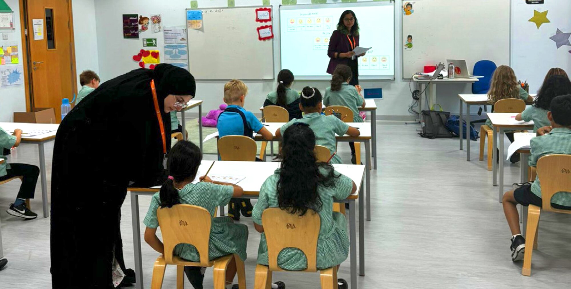 Conducting study sessions at schools in Abu Dhabi.